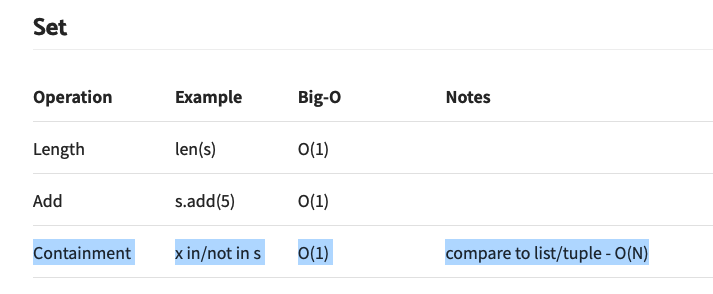 Set에서는 if _ in set => 이거의 경우, 시간복잡도가 O(1)이다.