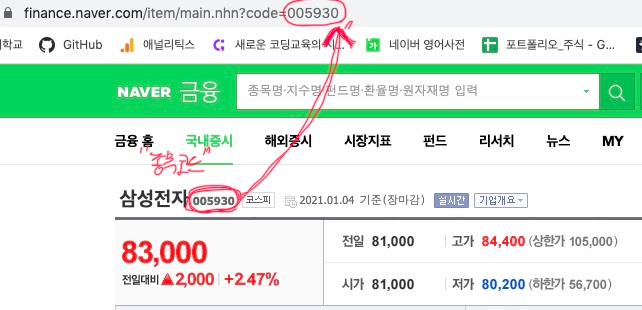 일단 기존의 코드를 돌려놓고 '종목코드를 한번에 어떻게 가져올까?' 라는 고민을 하다보니,