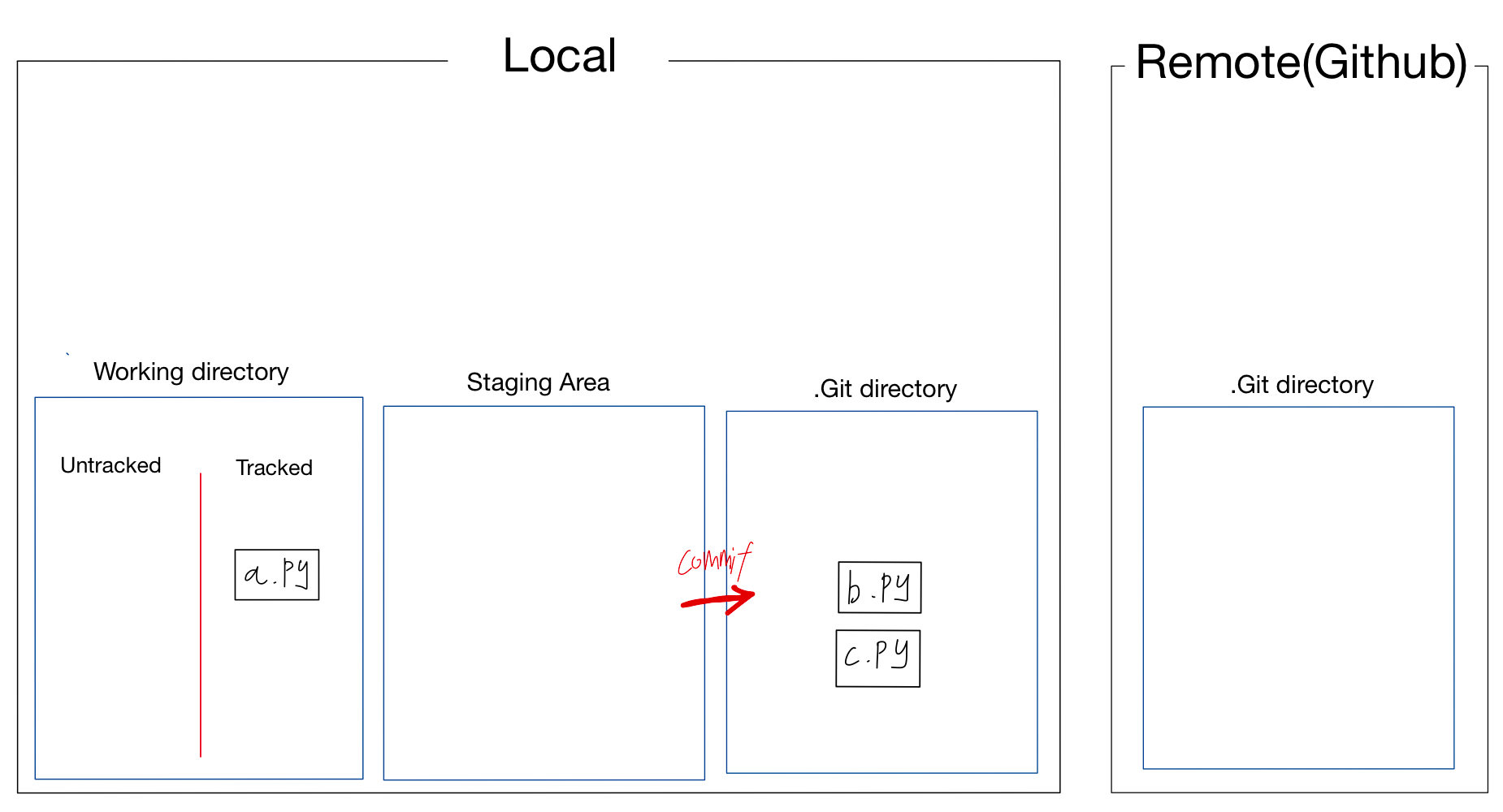 이처럼 기존의 a.py, b.py, c.py는 모두 Staging Area에 존재하고,