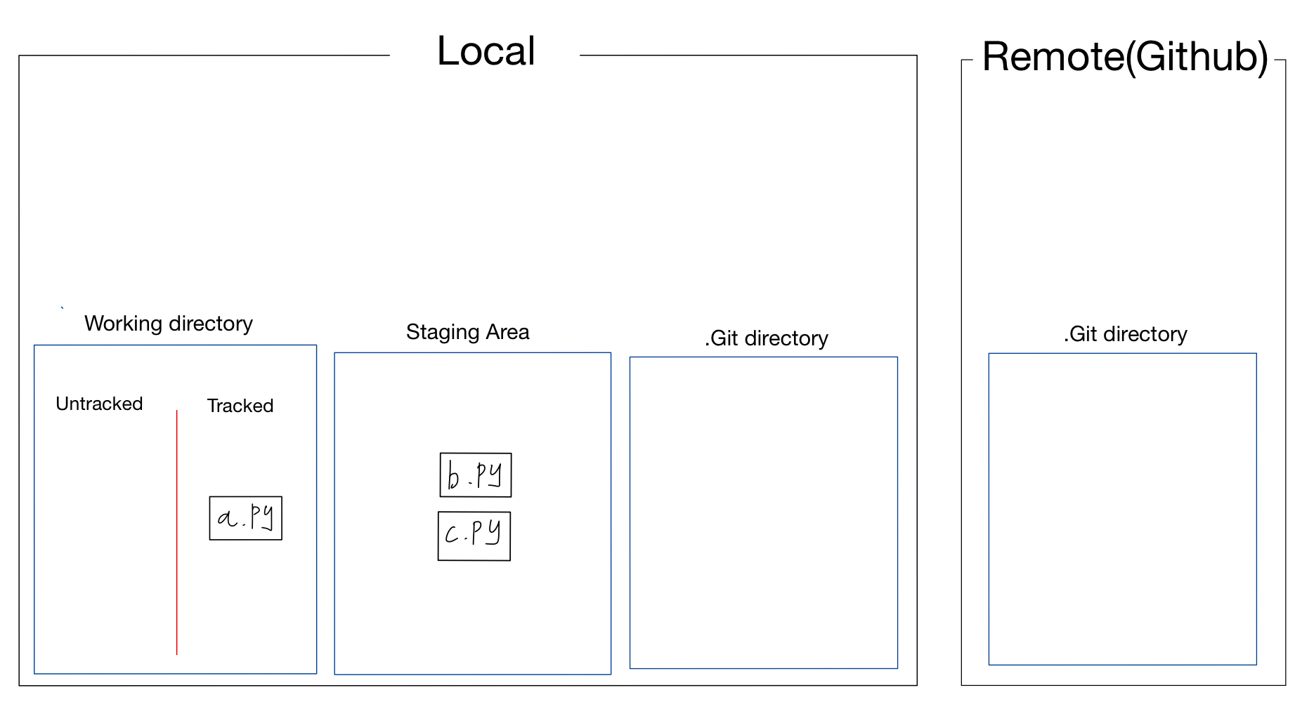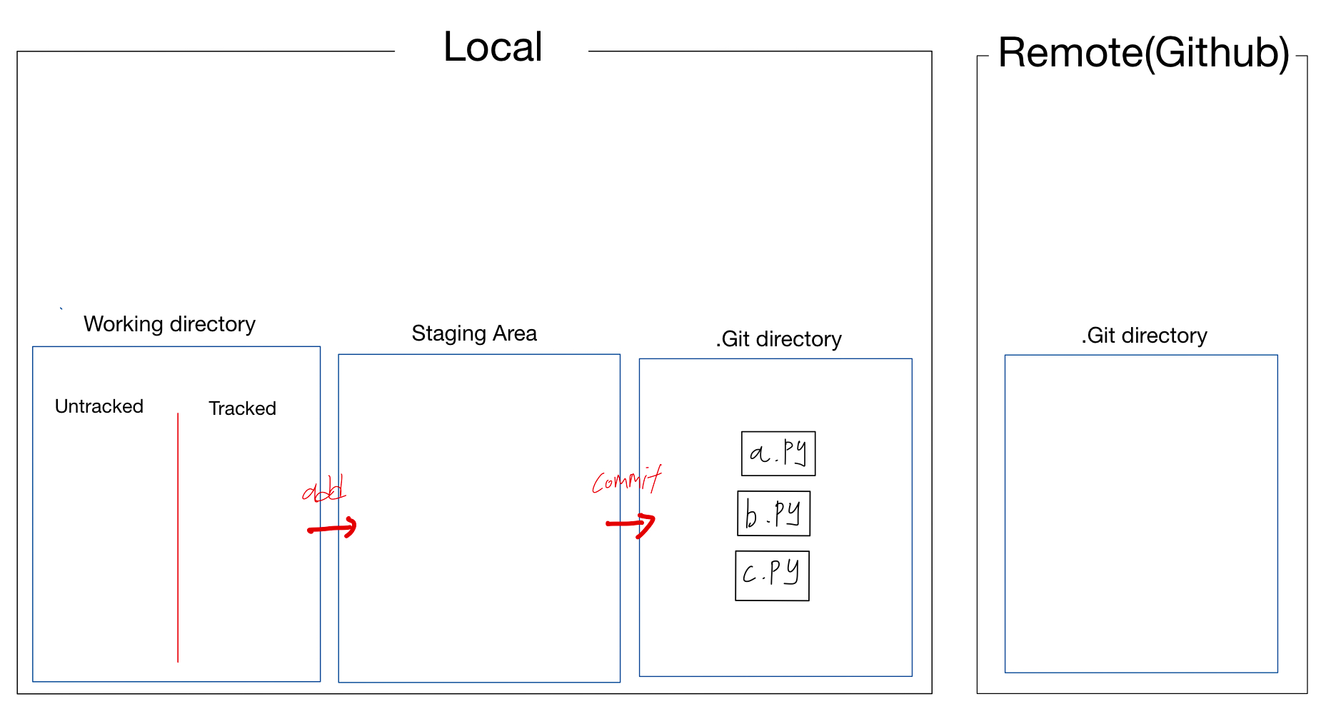 이처럼 처음에 Local저장소의 Working directory에 Untracked file로 존재하는 걸 알 수 있다.