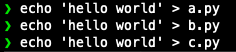 echo 'hello world' > a.py