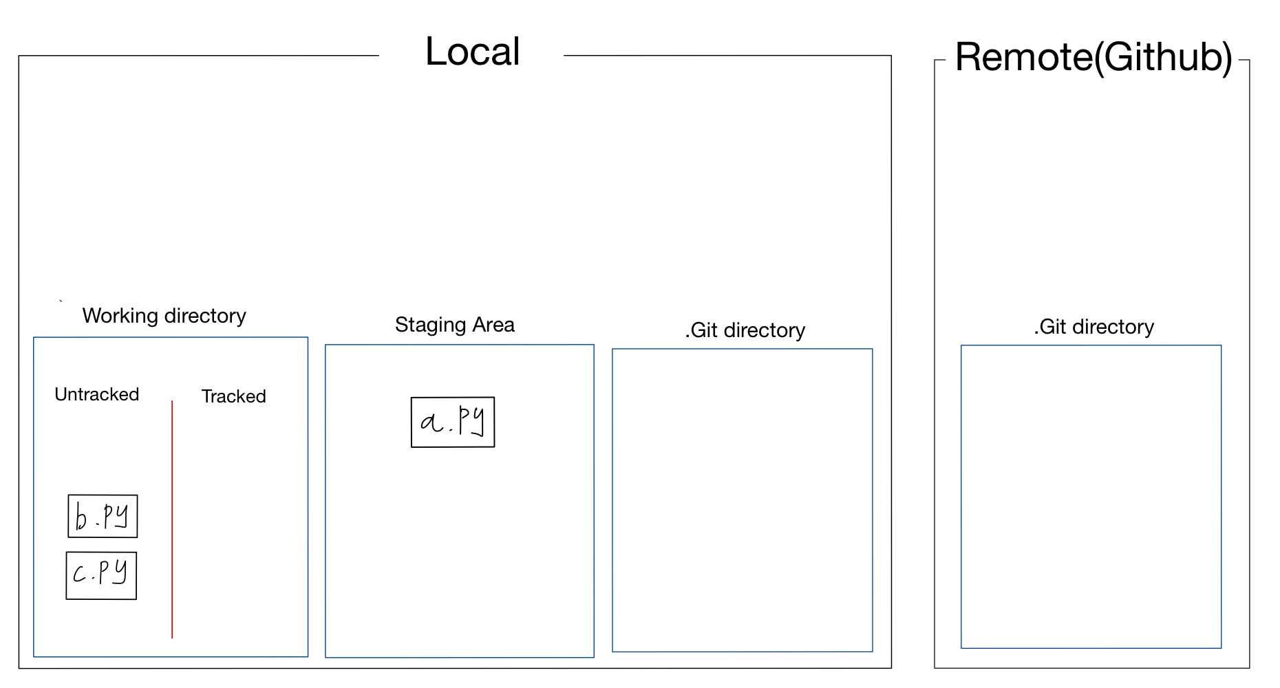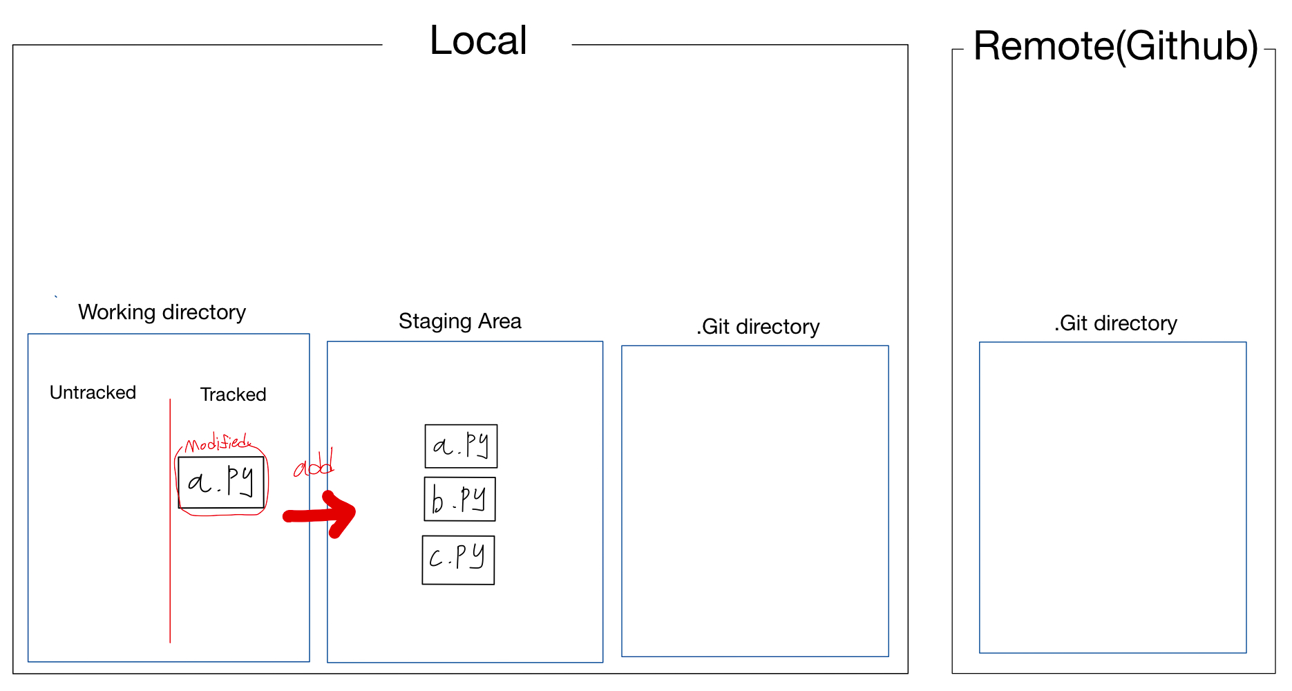 (Working directory에 있지만, 단 한번도 add나 commit이 되지 않는다면 Untraced로 남고 git은 이를 관리하지 않는다.)