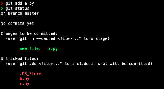 이제 add 명령어를 사용하여, a.py를 Staging Area로 넣어보자.